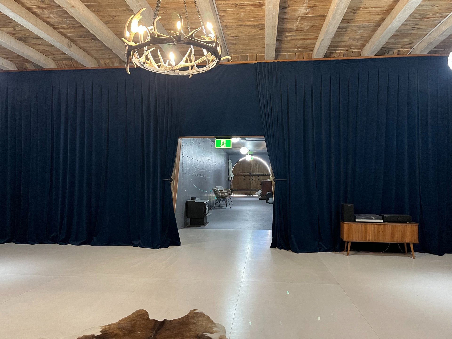 At the heart of the estate lies an 88sqm high-end wine cellar, carved directly into the North Canterbury hillside. Renovated to a bespoke designer standard, this subterranean vault offers a climate-controlled environment that serves as a world-class function space, a private tasting room, or the ultimate private catered dinning experience. Originally built to cellar the wines of the old vineyard on this site the subterranean cave is available for hire as a multi use venue. Also available to you as a communal gathering area if you hire the entire estate & accommodation for 2 nights. Solidly constructed of engineered concrete panels and lined with dark timber paneling & blue velvet. A wide tunnel, which is a room in itself, leads you back into a large 88 sqm calming ambience for ideal for yoga and wellness retreats. The perfect banquet hall offering for intimate weddings or other celebrations the cave offers memorable surroundings for an epic evening of celebration.